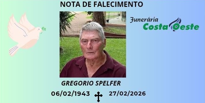 A Funerária Costa Oeste comunica o falecimento de Gregorio Spelfer