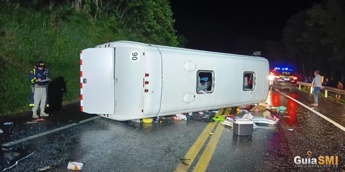 Grave acidente com ônibus de turismo deixa um morto e 21 feridos na BR-277