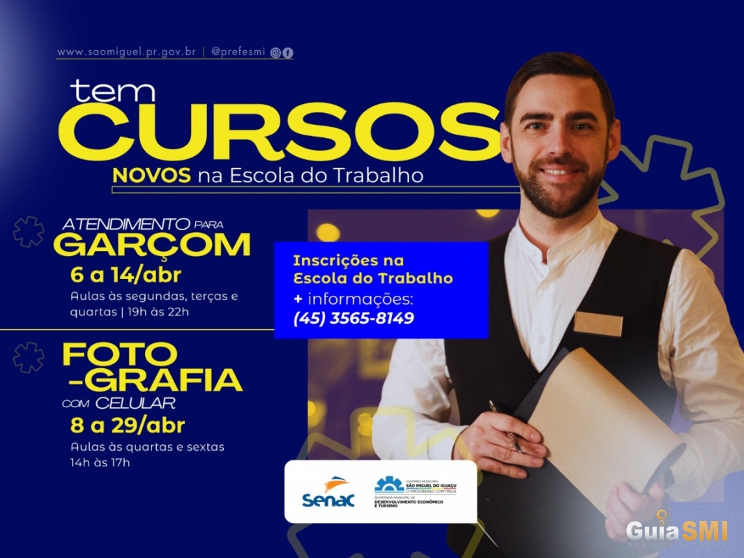 São Miguel do Iguaçu abre inscrições para cursos de Garçom e Fotografia com Celular na Escola do Trabalho