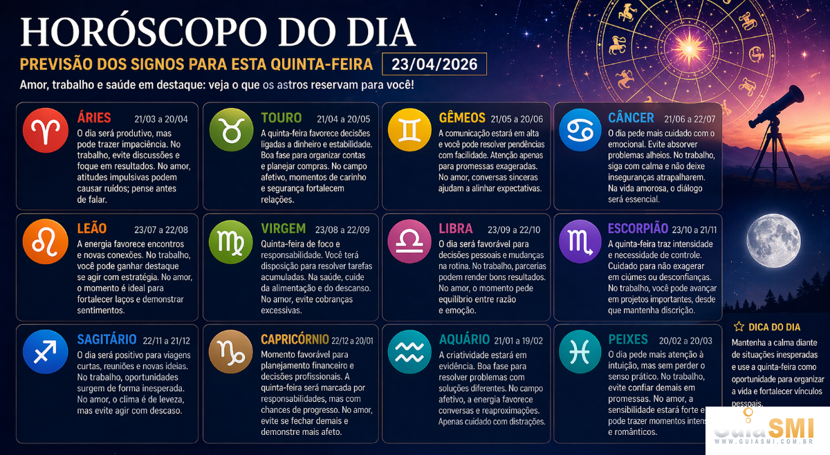 Horóscopo do dia: confira a previsão dos signos para esta quinta-feira (23)