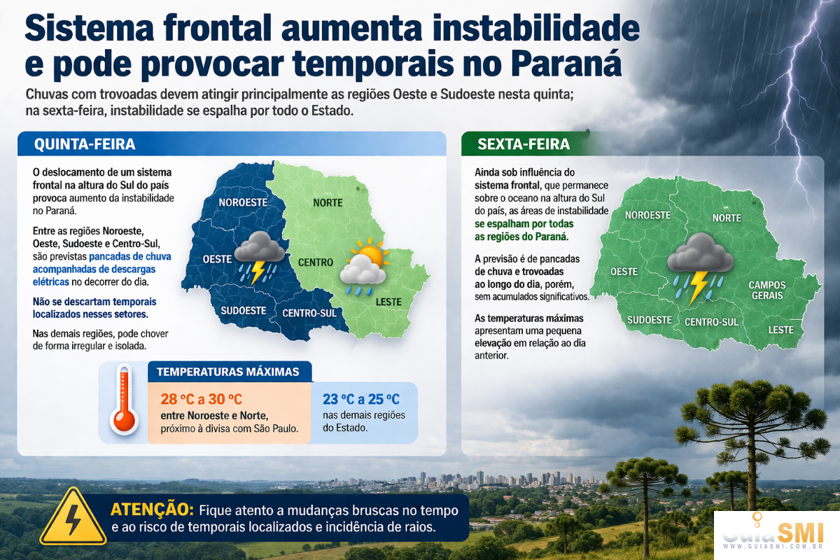 Sistema frontal aumenta instabilidade e pode provocar temporais no Paraná