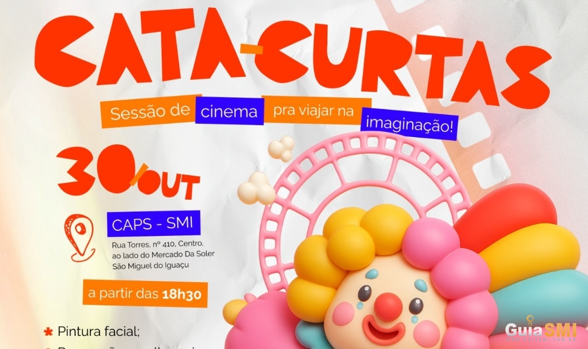 O clima de cinema vai invadir o CAPS (Centro de Apoio Psicossocial) de São Miguel do Iguaçu nesta quinta-feira, 30 de outubro, com uma programação pra lá de especial! O projeto CataCine realizará a sessão “CATA-CURTAS”, trazendo uma seleção de filminhos encantadores que prometem fazer o público viajar na imaginação.
