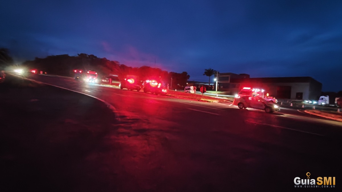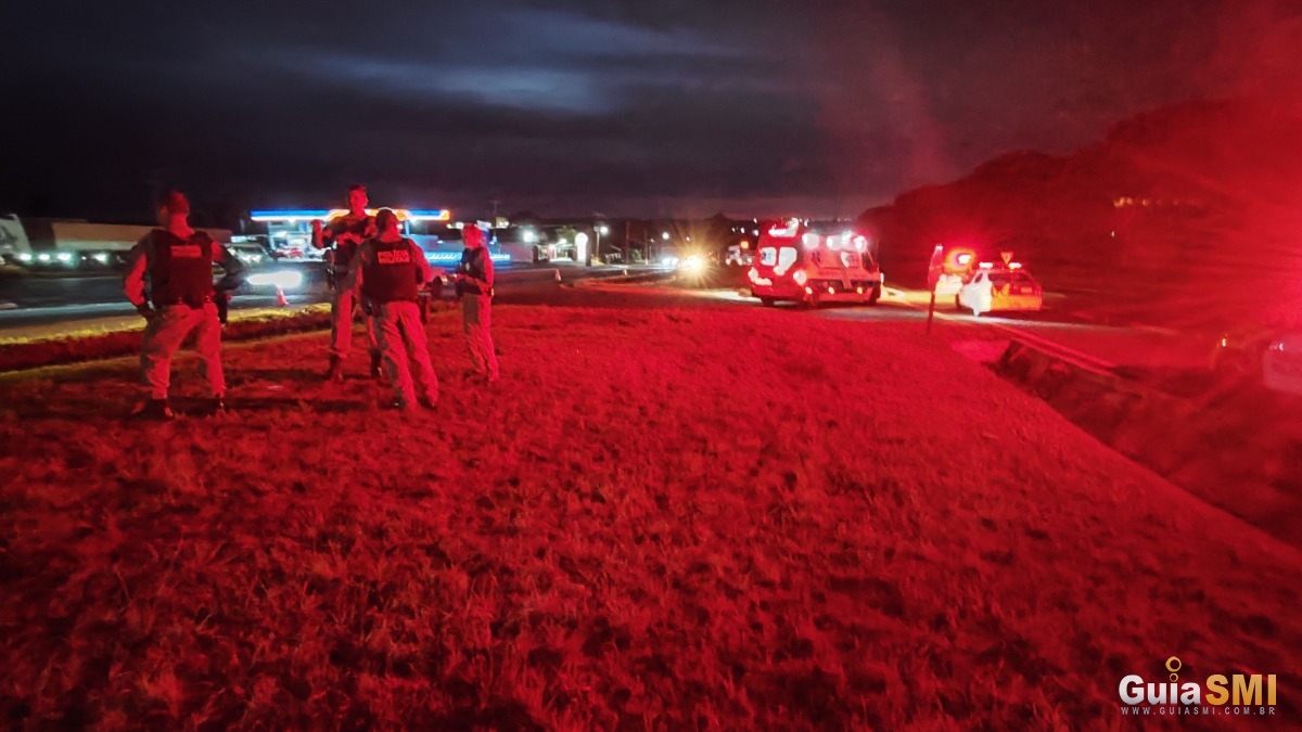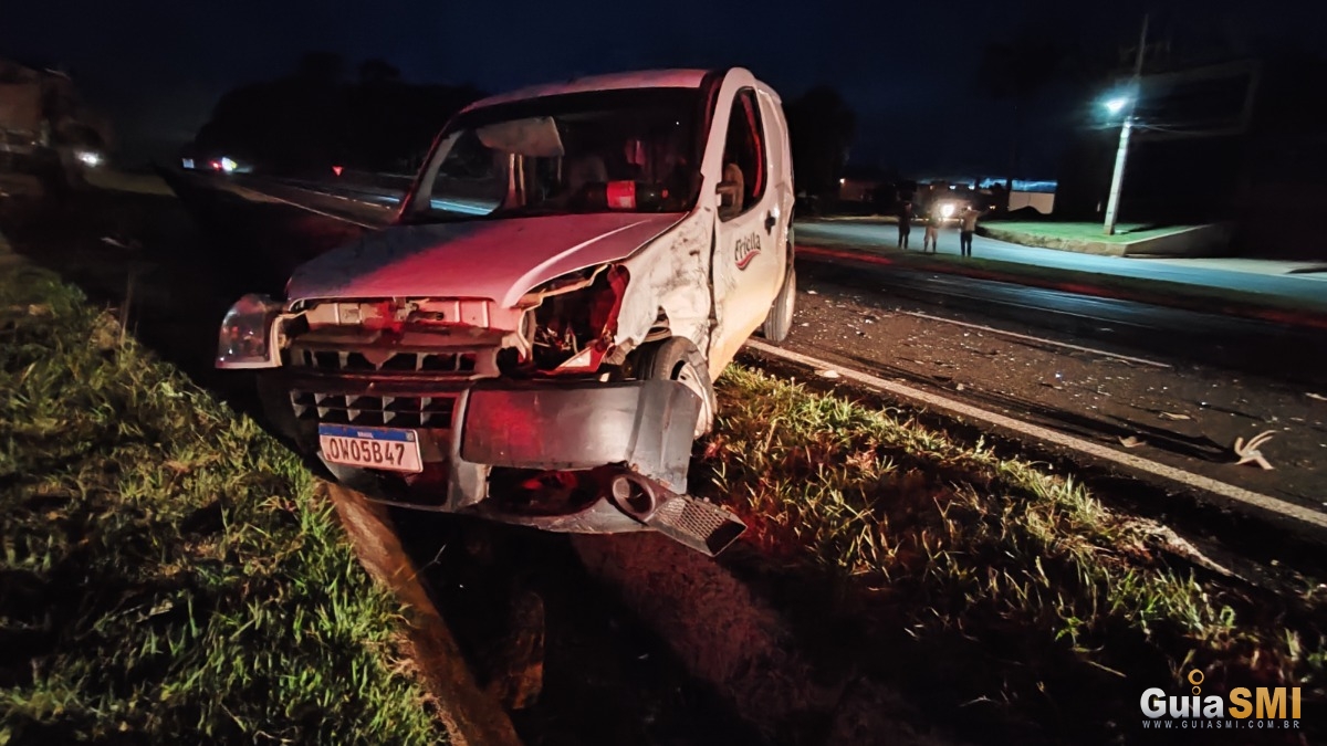 Acidente ocorreu no trevo de acesso à Linha Cacic e deixou policiais feridos na noite desta quarta-feira