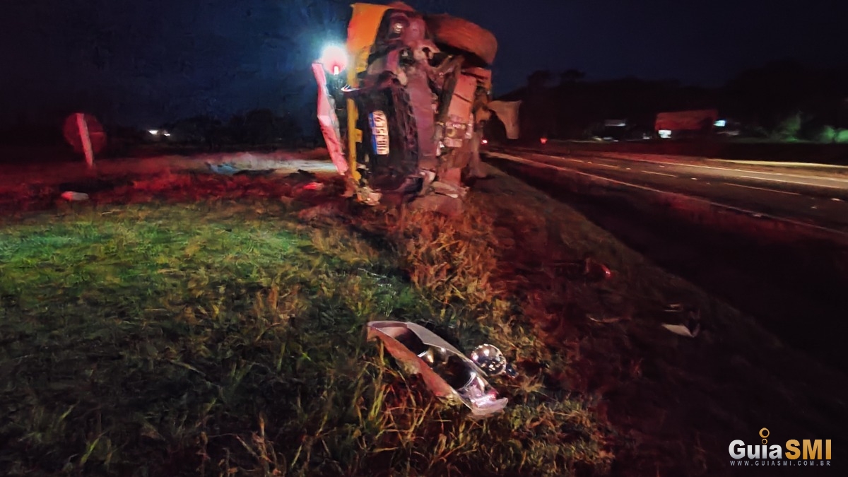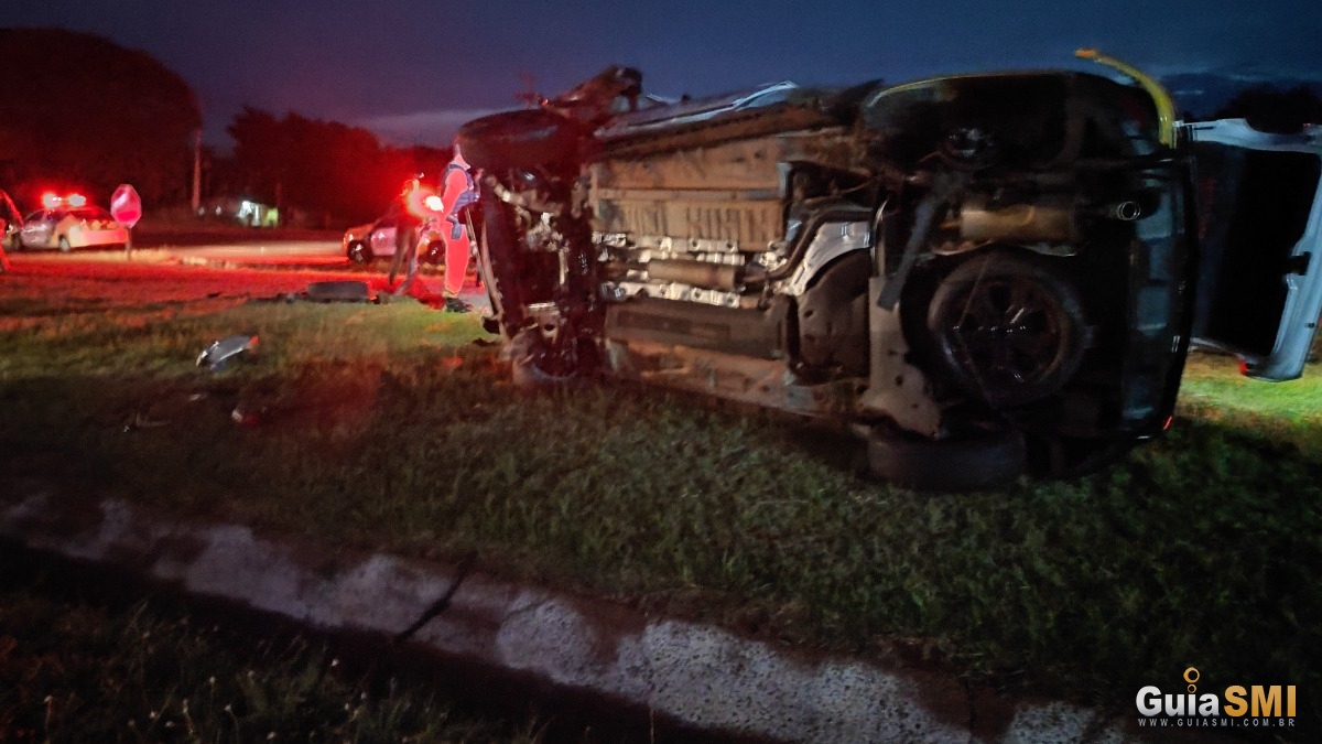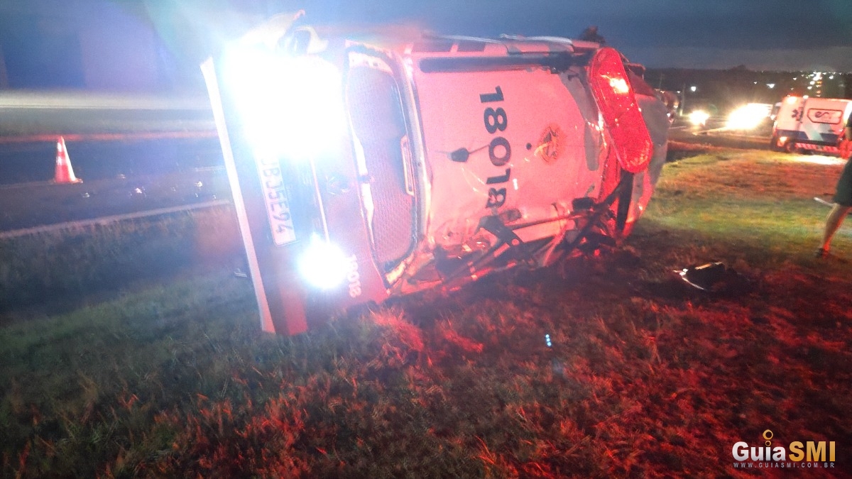 Durante a manobra, ocorreu uma colisão transversal entre os veículos, o que provocou o capotamento da viatura policial às margens da rodovia.