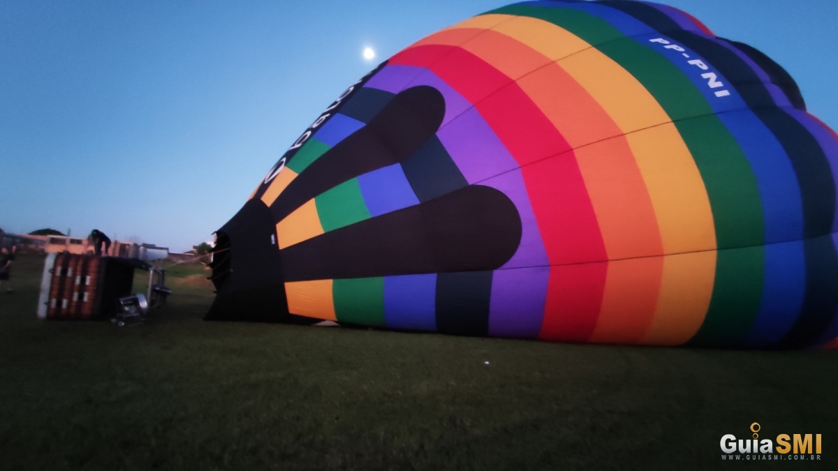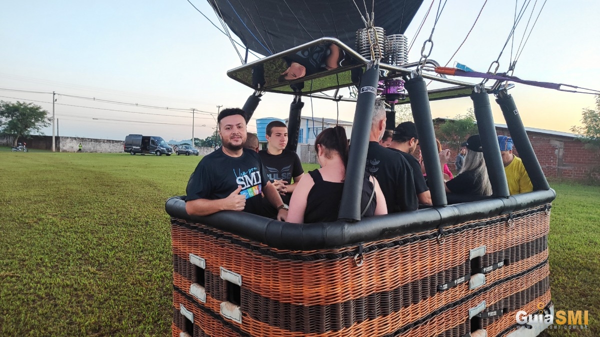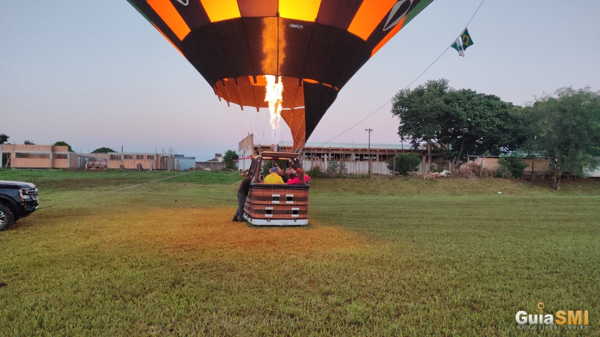 A decolagem aconteceu por volta das 6h30, quando o sol começava a surgir no horizonte e o céu apresentava condições favoráveis para o voo. Aos poucos, o balão foi ganhando altura e encantando quem acompanhava o momento, levando passageiros para uma vista privilegiada da cidade, em uma experiência considerada única e inesquecível.