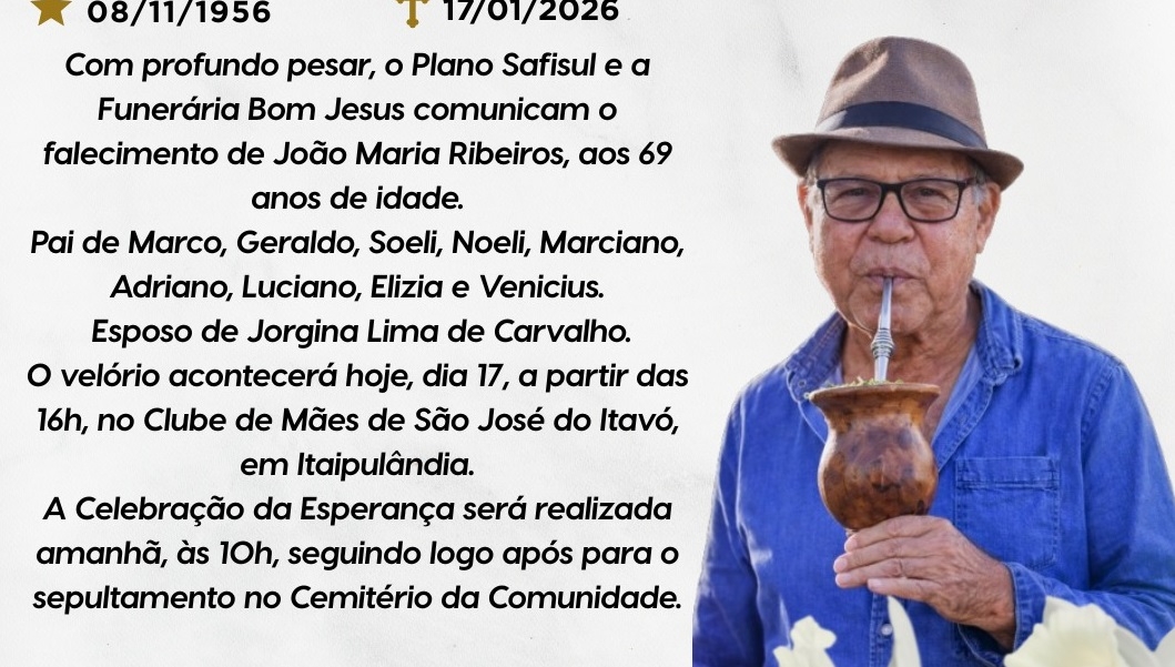 Velório ocorre em São José do Itavó e sepultamento será realizado neste domingo em Itaipulândia