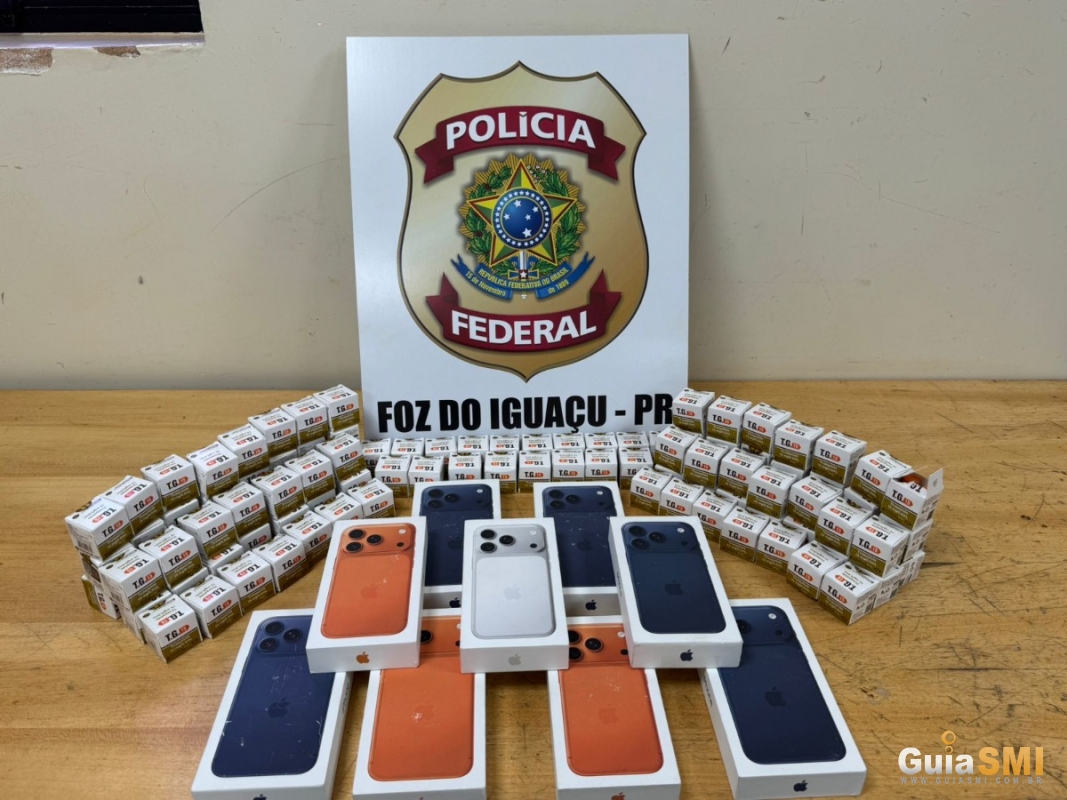 Ação na BR-277 resultou na apreensão de iPhones avaliados em R$ 64 mil e centenas de ampolas de medicamento escondidas em fundo falso de ônibus