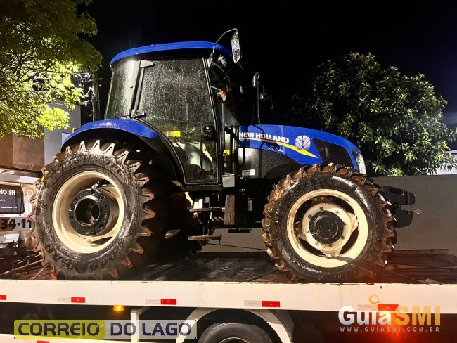Maquinário foi recuperado pela Polícia Militar com apoio de rastreamento via GPS; ninguém foi preso até o momento