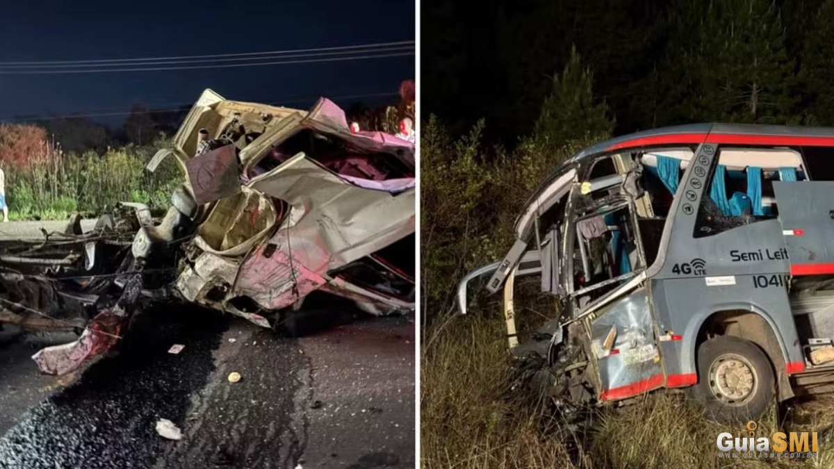 Colisão aconteceu na noite de domingo (5), entre São Mateus do Sul e Três Barras; ônibus fretado por uma família retornava de uma festa em Caxias do Sul