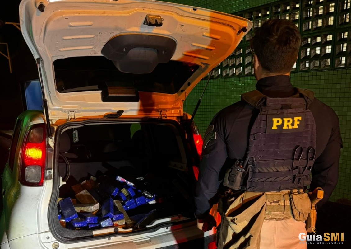 Motorista foge a pé e abandona veículo durante ação da Polícia Rodoviária Federal; droga estava em carro com placas adulteradas