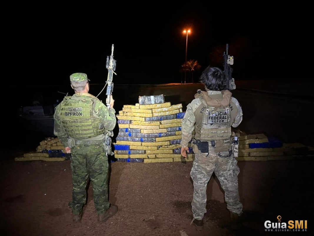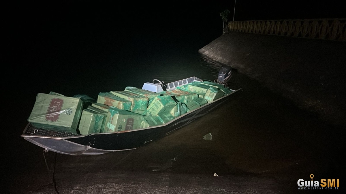 Embarcação de fibra foi abandonada pelo condutor, que fugiu pela mata ciliar do lago de Itaipu.