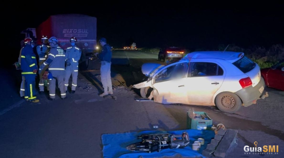 Colisão entre carro e carreta ocorreu na noite desta terça-feira (23), próximo ao Contorno Oeste