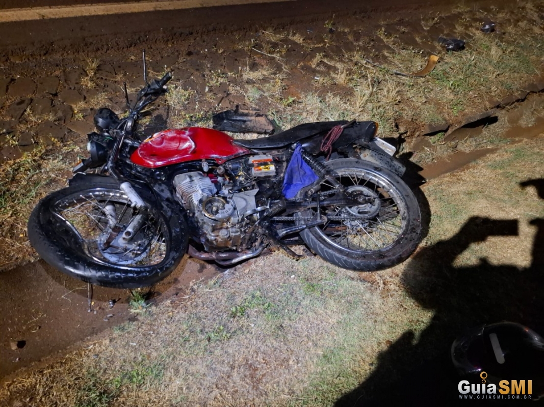 Colisão frontal entre carro e motocicleta ocorreu na noite de sábado; motociclista morreu no local